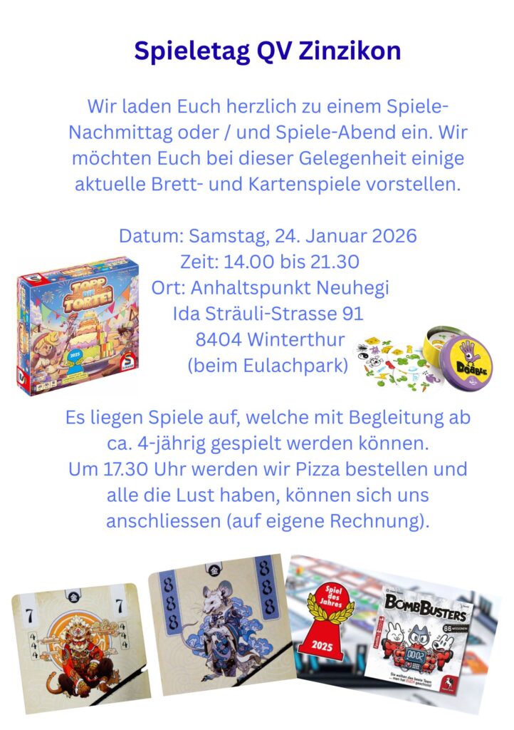Spieletag 2026 Anmeldung Spieletag 2026 Name(erforderlich) Vorname Nachname E-Mail(erforderlich) Anzahl Erwachsene(erforderlich)12345678Anzahl Kinder(erforderlich)01234567Teilnahme(erforderlich) 14:00-17:00 Uhr 17:00-21:30 Uhr 14:00-21:30 Uhr Alter der Kinder NachrichtNameDieses Feld dient zur Validierung und sollte nicht verändert werden.